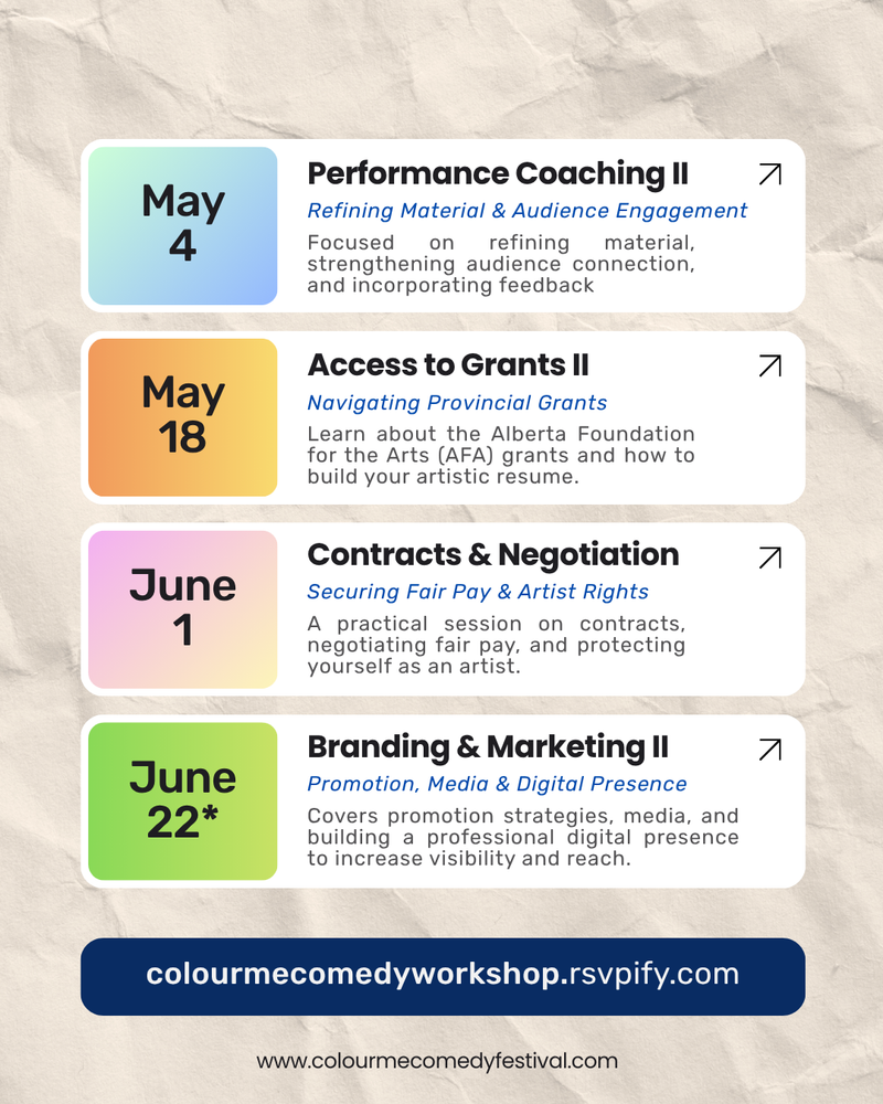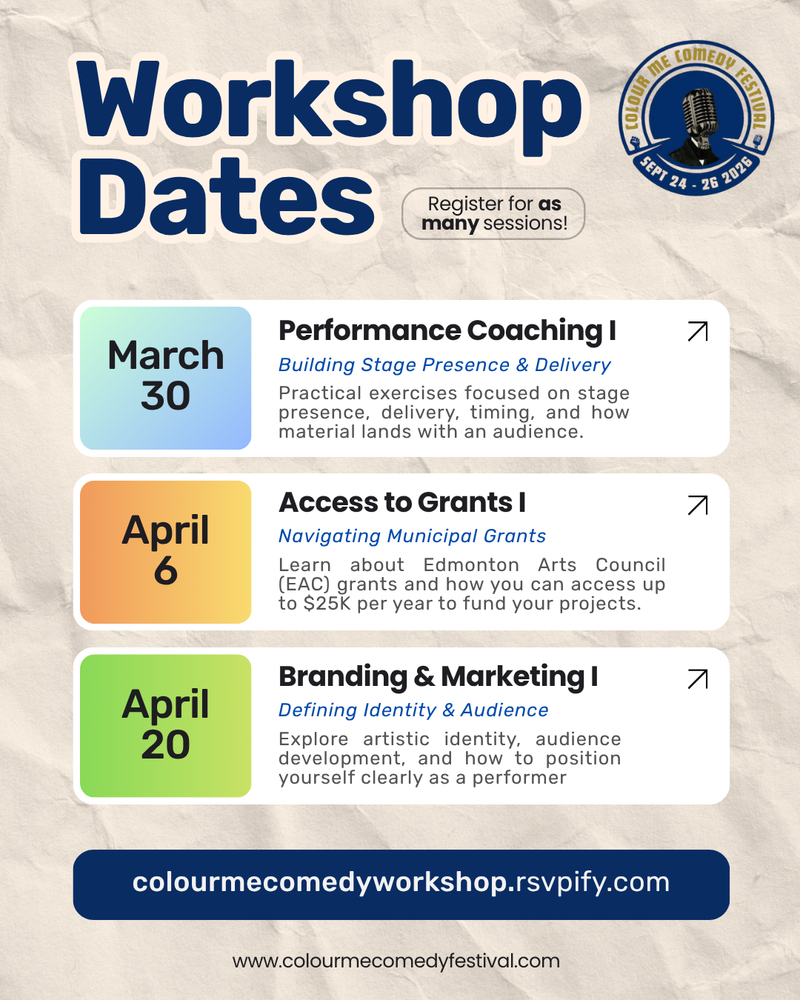 This series is designed primarily for Black comedians and artists from communities historically underrepresented in the performing arts, while remaining open to all Edmonton creatives.